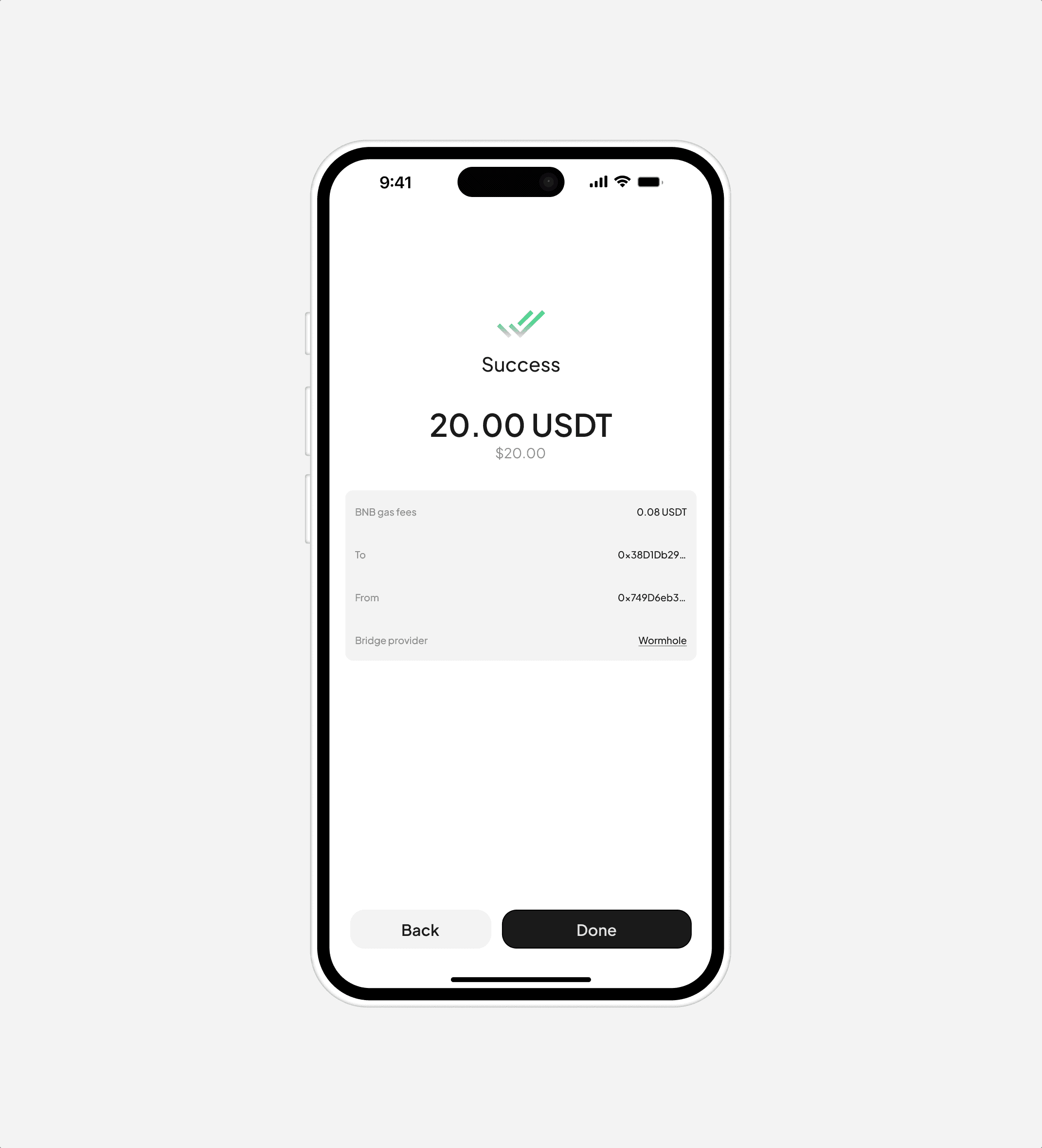 This project involved designing a streamlined mobile flow for sending USDT stablecoins within a multi-asset crypto wallet. The experience guides users from their portfolio dashboard through asset selection, action choice, and transaction input, with a strong focus on clarity and error prevention. By simplifying address entry, amount input, and confirmation, the flow builds user confidence and delivers clear feedback upon successful transfer—making stablecoin transactions feel approachable and reliable.