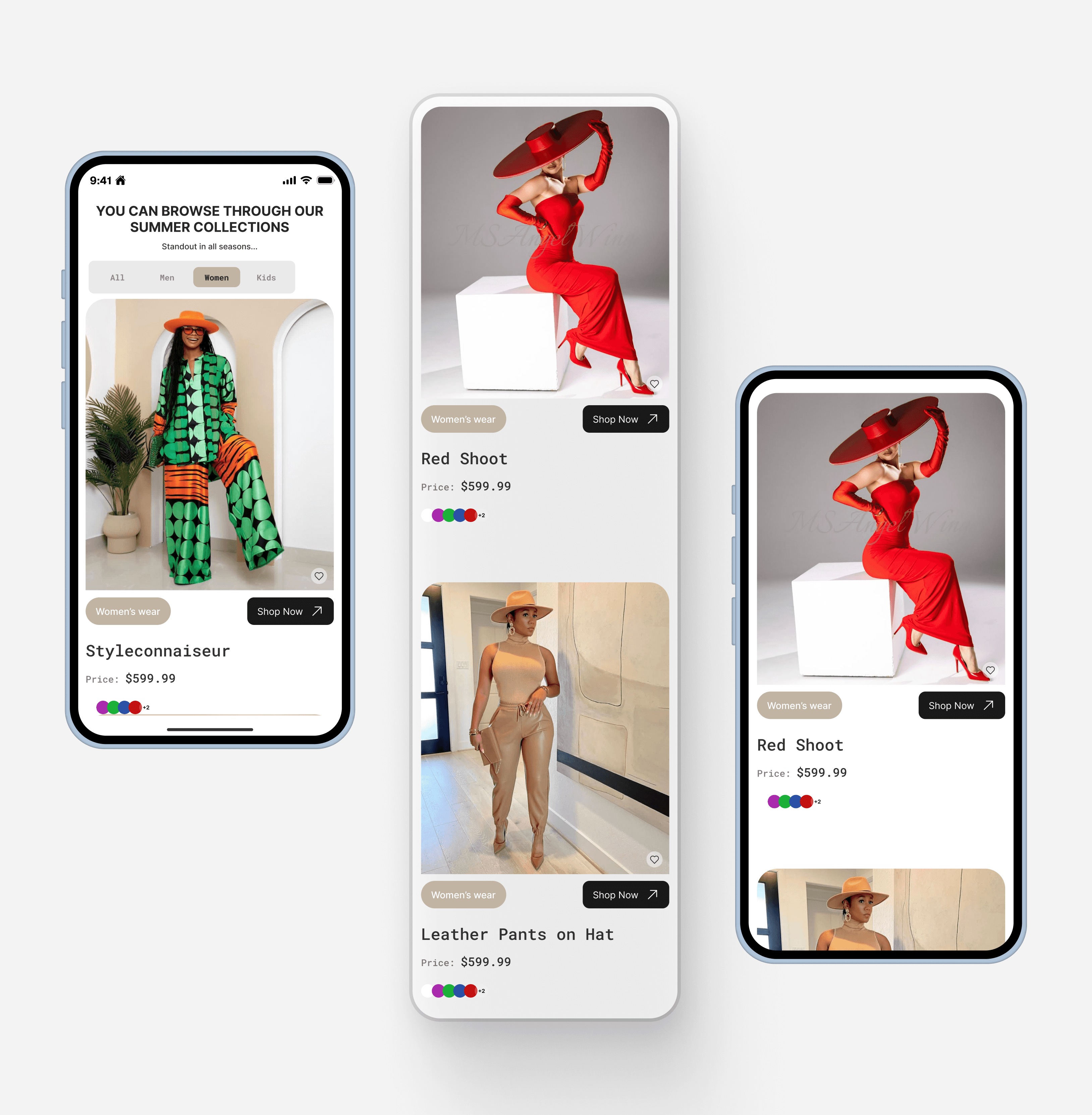 The final design delivers a clean grid-based layout with clear product cards, simple category filters, and strong visual hierarchy. This improves product discoverability, enhances the shopping experience, and creates a stylish interface that reflects the brand’s fashion-forward identity.